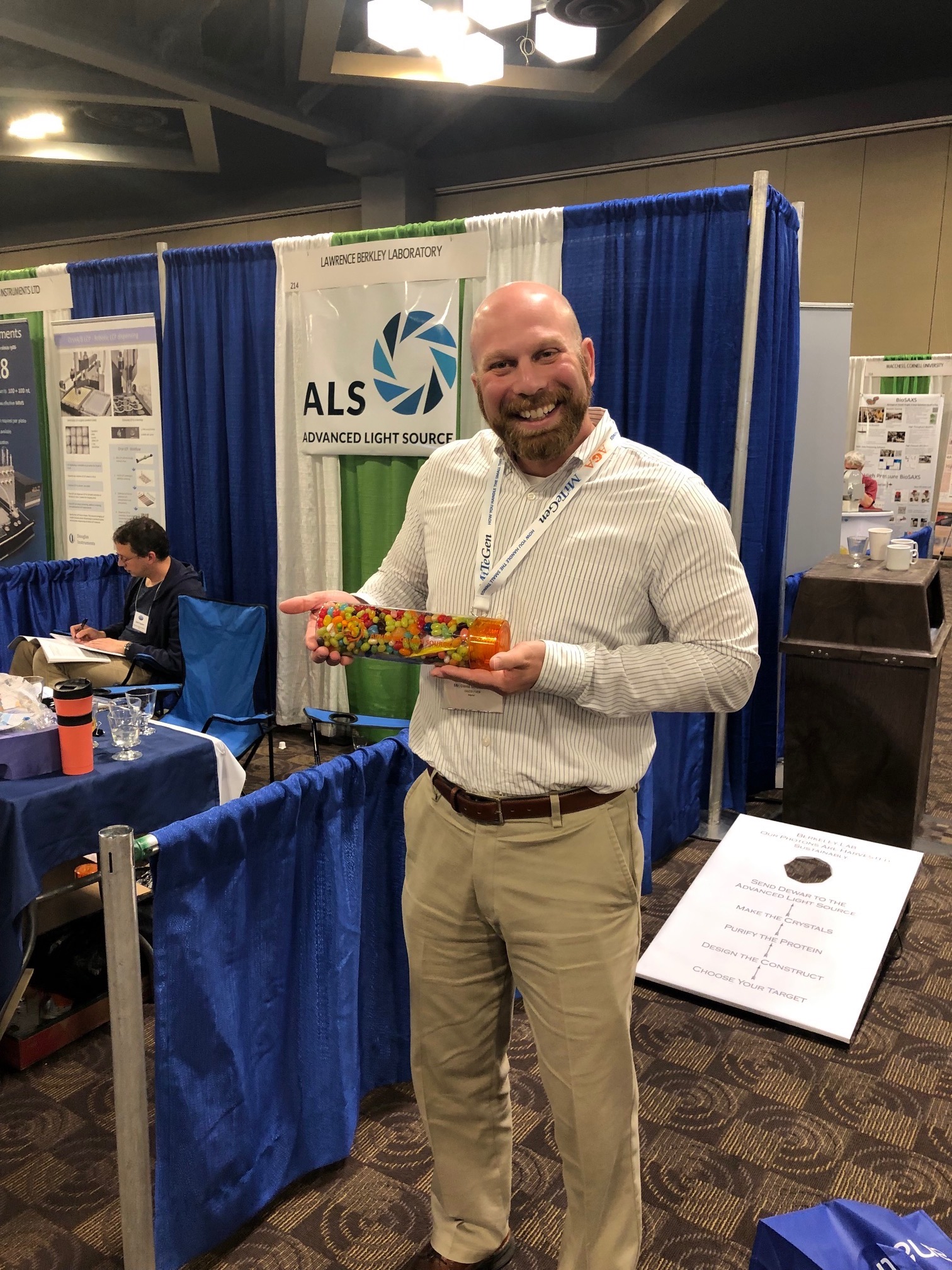 BycorieMy group is heading off to the ACA (American Crystallographic Association) to help represent the ALS beamlines. Wait a minute, that doesn’t look like the ALS booth in the background there…